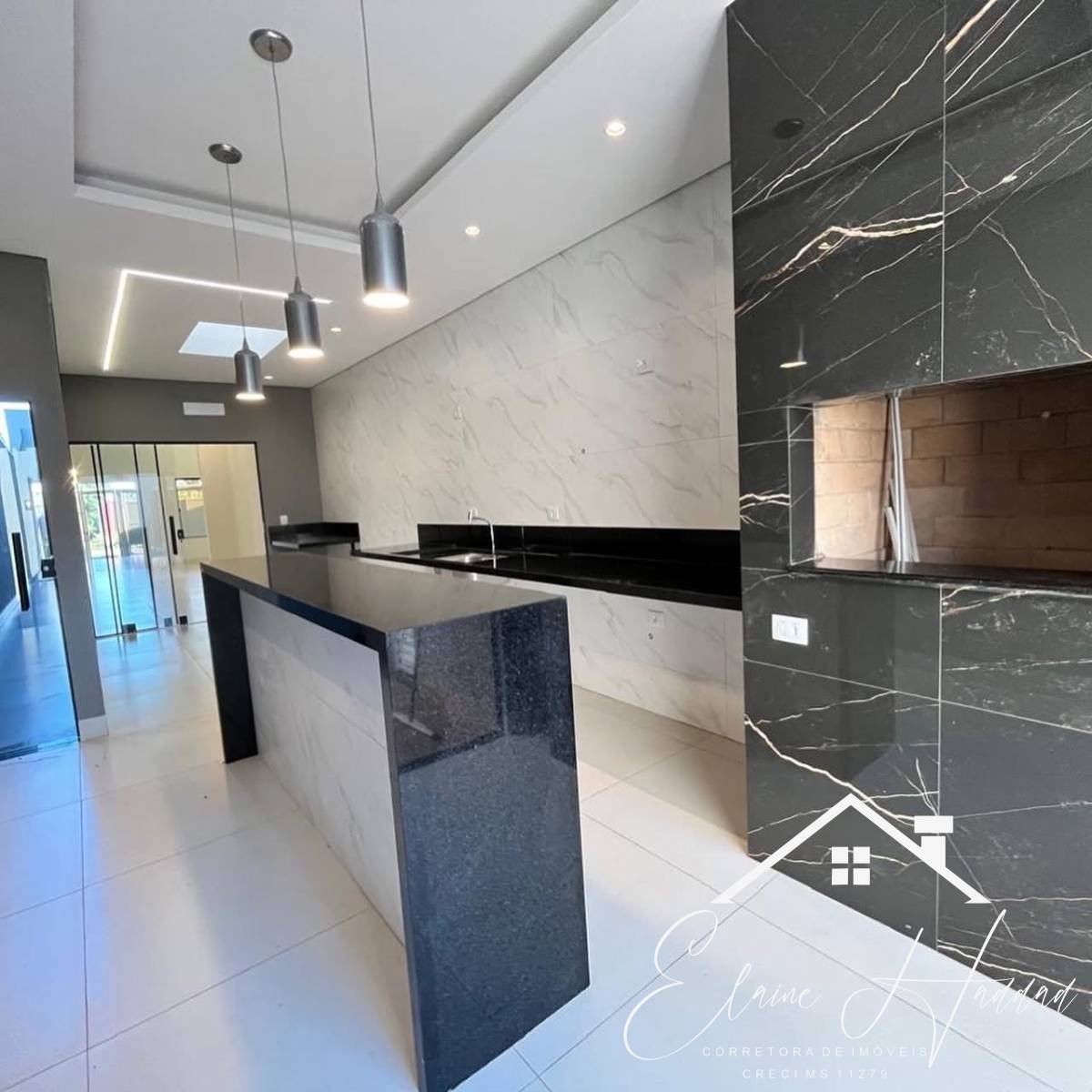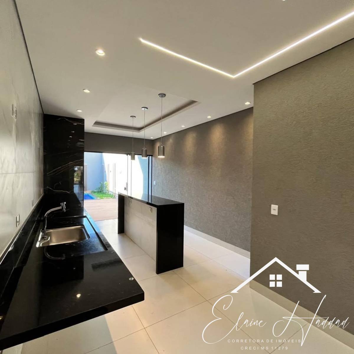 fachada moderna e rica em iluminação em led, composto com 3 suites, Jardim de inverno, sala ampla para 2 ambientes e pé direito alto, lavabo, imóvel impecável com uma super piscina, hidro, iluminação, prainha e com aquecimento e altíssimo acabamento, portão de 4 segundos, paisagismo, cozinha gourmet com balcão em mármore, área gourmet completa com pia e churrasqueira, lavanderia coberta, cerca elétrica e concertina, e garagem para 4 carros.